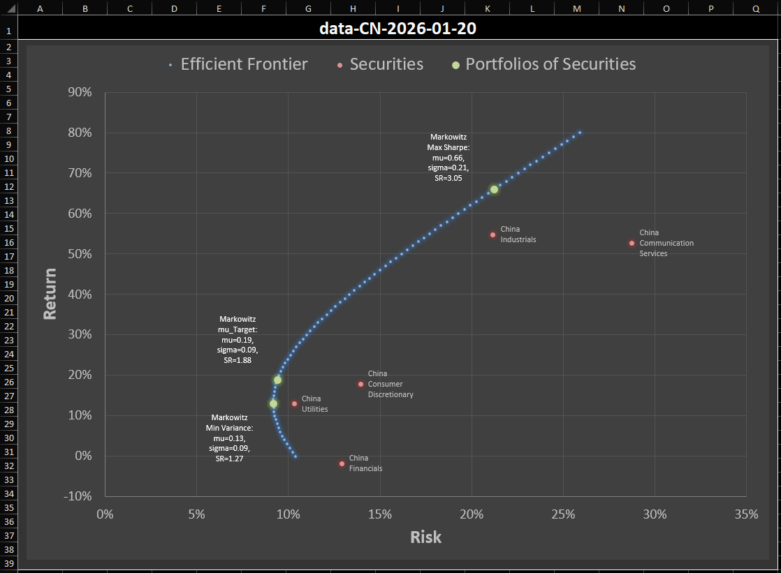 Portfolios of Interest: Markowitz 19% Target, Minimum Variance, Maximum Sharpe
